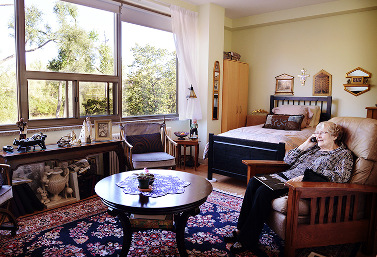 Each room features a studio-style space, with many offering views of our beautiful garden, and surrounding North York. Rooms come wired for cable, internet, and phone services, but it is the responsibility of the resident to organize their installation and pay for them.